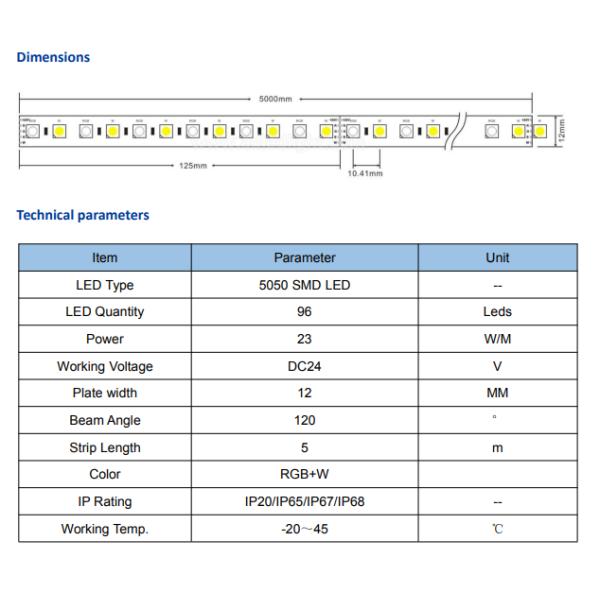 96leds/M SMD 5050 RGBW LED Strip High Lumen RGB Flexible for Indoor Decoration Images |
